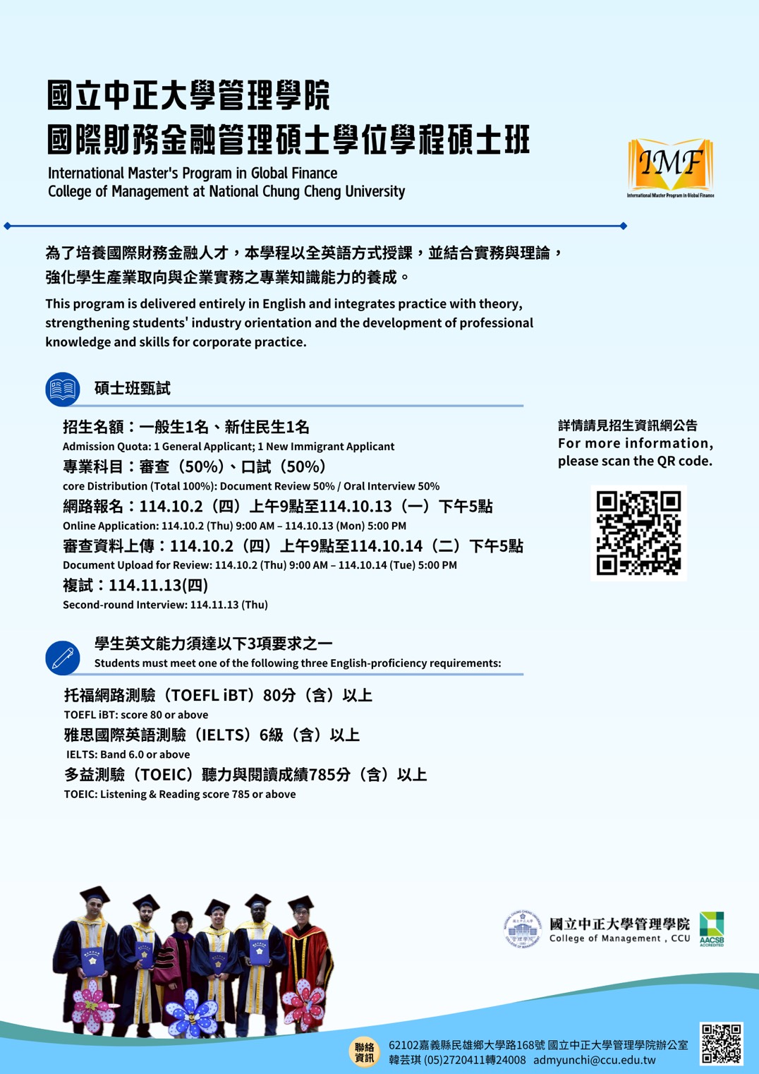 115學年度國際財務金融管理碩士學位學程招生簡介